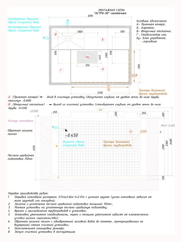 Очистку септик Астра 50 проводит в следующем порядке: